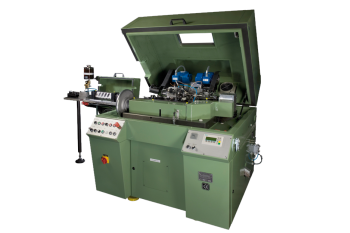 The blanks are filled in a hopper and positioned in line by means of a step feeder. A notched wheel then separates the blanks and places them in the processing position. Machining units on each side chamfer the sides of the clamped blanks simultaneously in a dry machining process according to the tool geometry. Chips are separated by means of two chip bells. After machining, the notched wheel ejects the parts once they are released from the clamping station. The system has replaceable processing heads using standard cutting inserts.